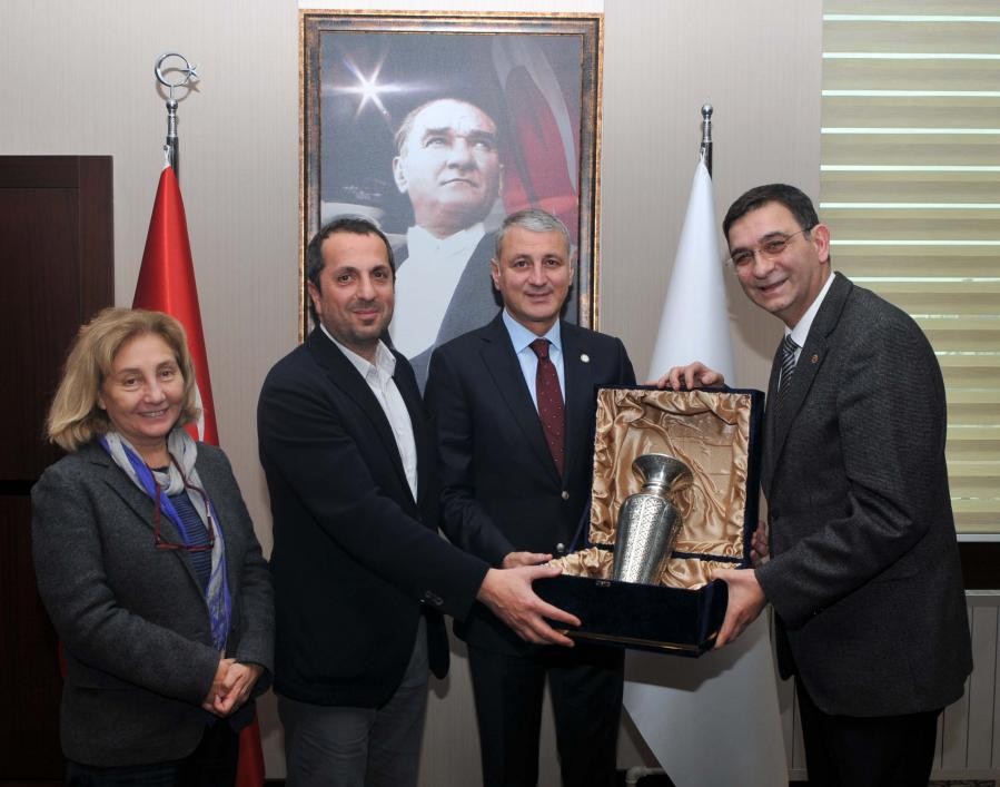 GSO Yönetim Kurulu Başkan Yardımcısı Ferhan Sağım, Yönetim Kurulu Üyeleri; Melike Yüksel, Perihan Çöçelli, Başar Küçükparmak, Mustafa Özmermer, Mustafa Özgüler, Metin Erturhan, Hakan Aslansoy ile Genel Sekreter Kürşat Göncü’nün de hazır bulunduğu ziyaret sonunda karşılıklı hediye alışverişinde bulunuldu.