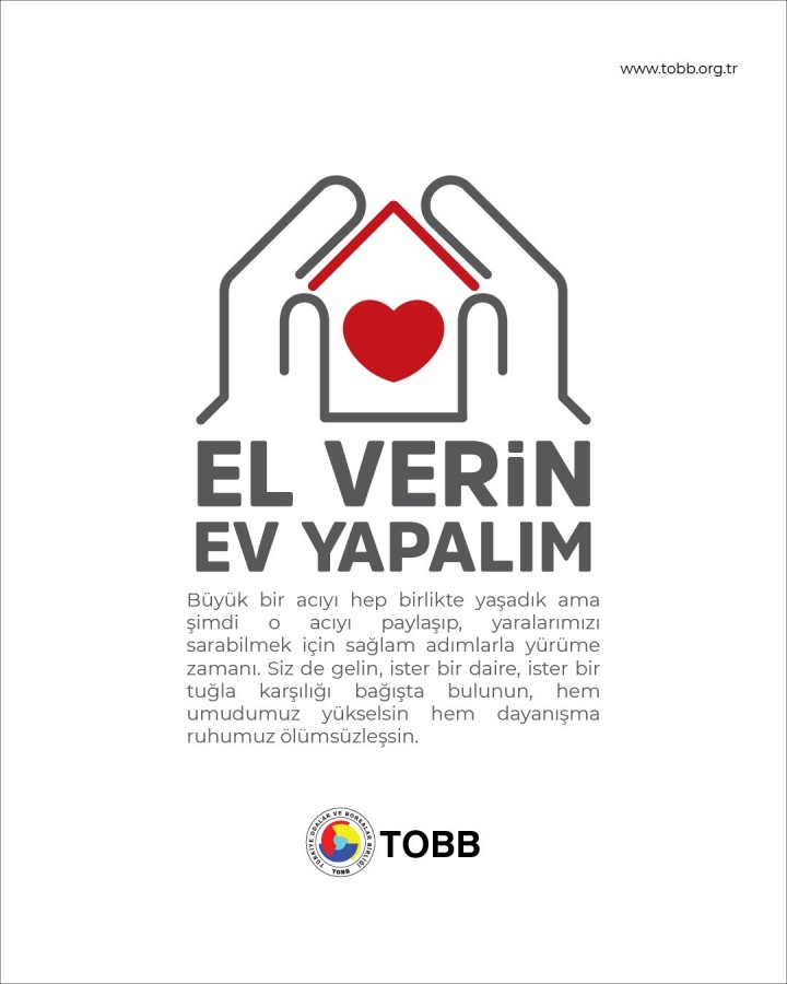 Bu kapsamda geçtiğimiz hafta Birlik Başkanımız Sn. M. Rifat Hisarcıklıoğlu’nun çağrısı ile “İş Dünyası Konut Seferberliği Kampanyası”nın (#ElverinEvyapalim) başlatıldığı duyurulmuştur. Kampanya ile İş Dünyası olarak felaket bölgesindeki kentlerimizde depreme dayanıklı ve güvenli konutlar inşa edilmesi amaçlanmaktadır.
