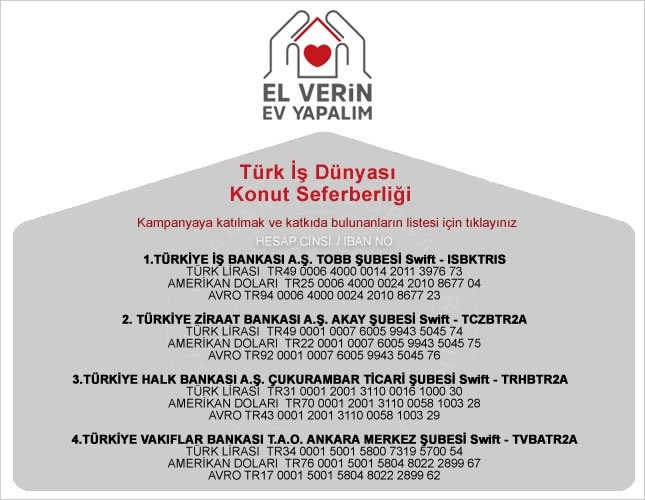 DEPREM BÖLGESİ KONUT SEFERBERLİĞİ KAMPANYASI | EL VERİN EV YAPALIM