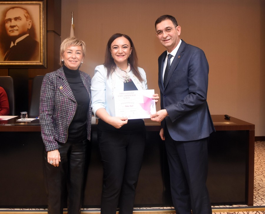 Konuşmaların ardından eğitime katılan girişimci kadınlara sertifika verildi.