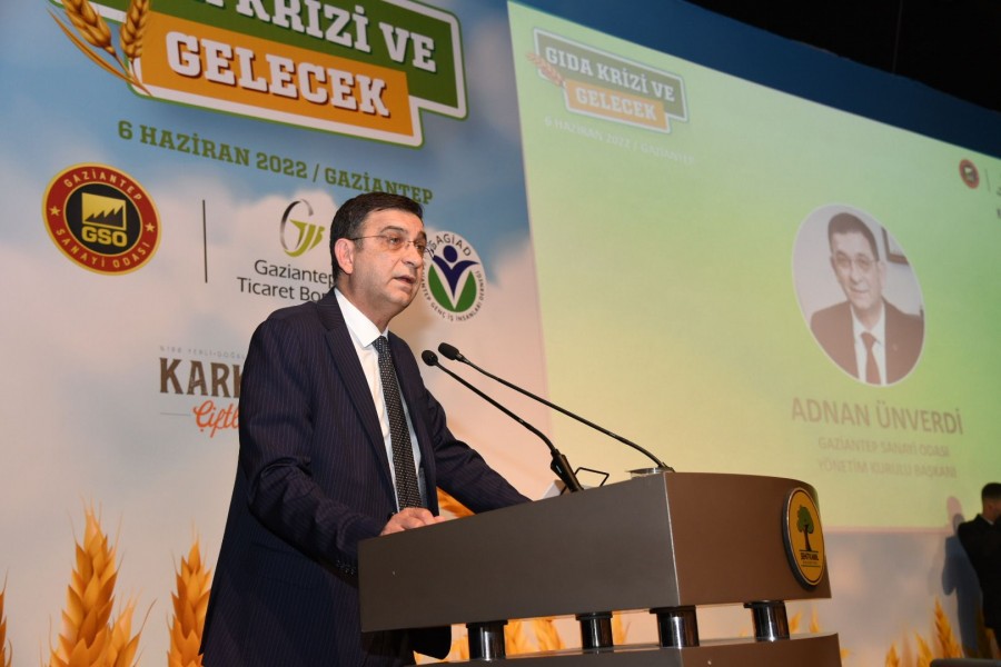Gıda güvencesi ve gıda güvenliğinin bugün tüm dünyanın ortak ve en büyük sorunu haline geldiğini söyleyen GSO Yönetim Kurulu Başkanı Adnan Ünverdi de konuşmasında, küresel ısınma ve iklim değişikliği ile birlikte gıda konusunun buğün artık çok daha kritik ve stratejik hale geldiğini, pandemi döneminde yaşanan sıkıntıların ardından Ukrayna-Rusya savaşının da gıda arzı konusunda sıkıntıyı büyütmekle birlikte bu süreci daha da hızlandırdığını kaydetti.