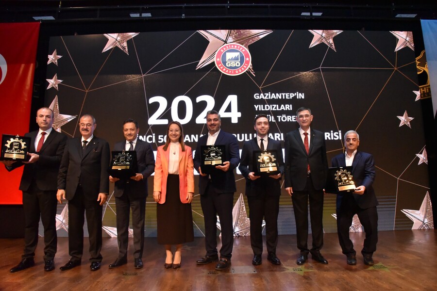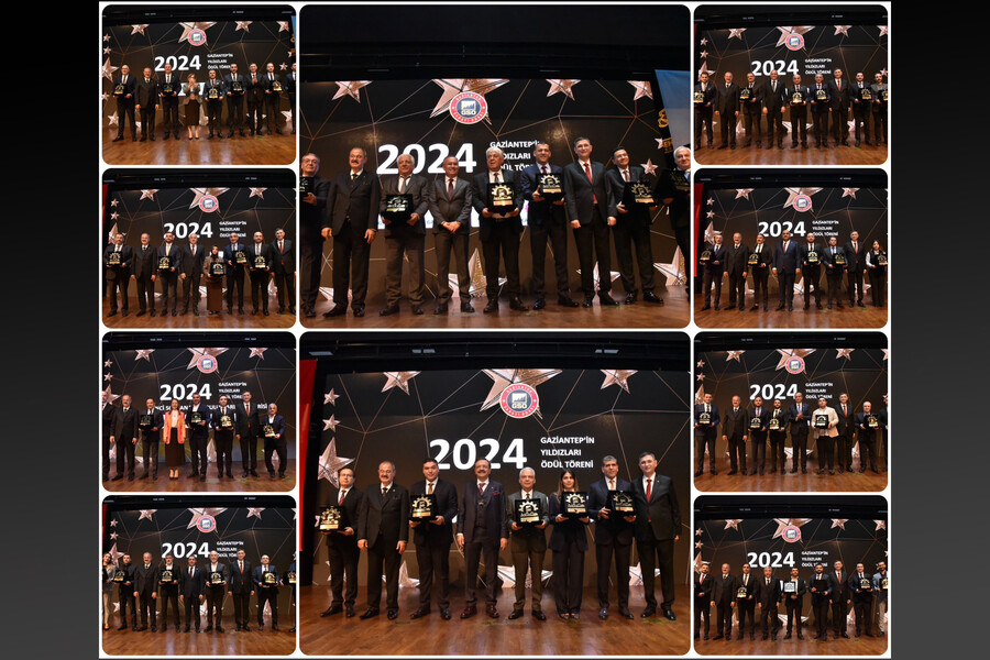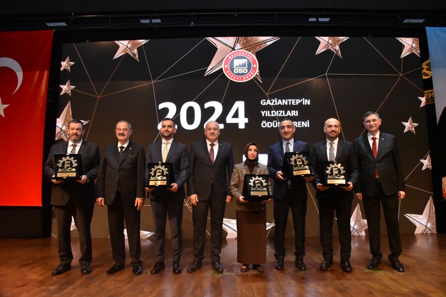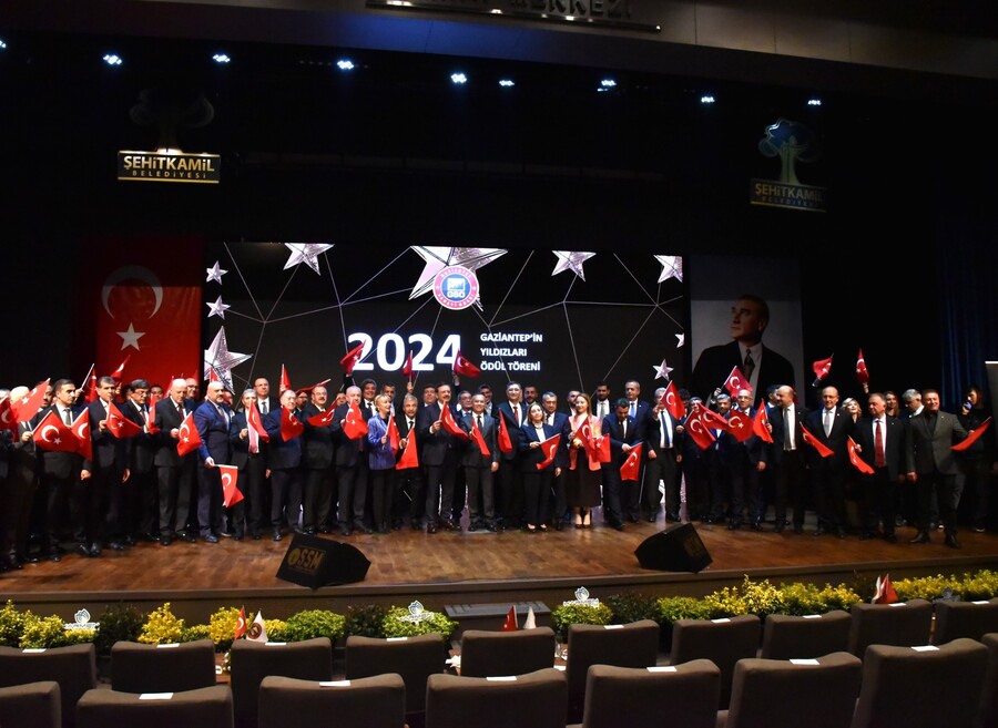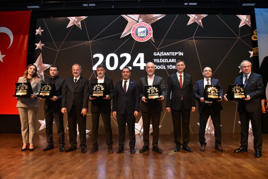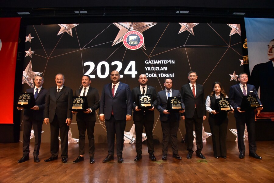 “Üçüz Dönüşüm” (Yeşil Dönüşüm, Dijital Dönüşüm ve Sosyal Dönüşüm) farkındalığı temasıyla gerçekleştirilen, Türkiye’nin en büyük sanayi kuruluşları arasında yer alan Gaziantep firmalarının ödüllendirildiği Gaziantep’in Yıldızları-2024 Ödül Töreni, Şehitkamil Sanat Merkezi’nde (ŞSM) yapıldı.