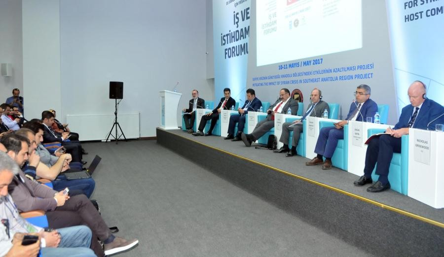 Birleşmiş Milletler Kalkınma Programı (UNDP) Türkiye tarafından yürütülen ve Avrupa Birliği tarafından finanse edilen “Suriye Krizinin Güneydoğu Anadolu Bölgesi’ndeki Etkilerinin Azaltılması Projesi” kapsamında desteklenen ve kısa süre önce işletmeye alınan Gaziantep Sanayi Odası Meslek Eğitim Merkezi’nde düzenlenen “İş ve İstihdam Forumu”nda Suriyeliler ve ev sahibi topluluklar için işgücü piyasasının hem arz, hem talep yönü ele alınarak, geçim kaynağı ve istihdam fırsatlarının geliştirilmesi hedefinin hayata geçirilmesi ele alındı.