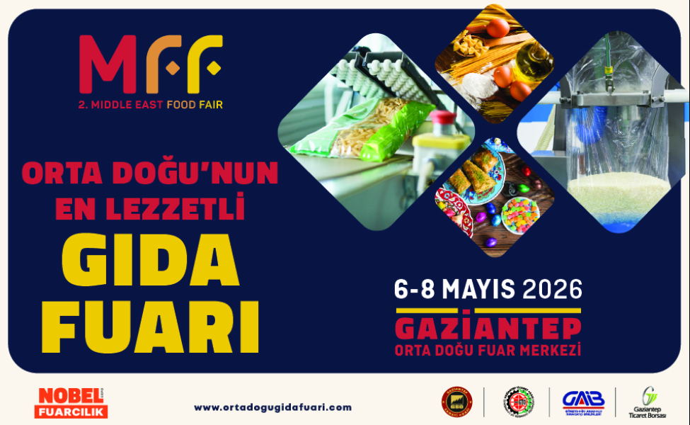 Gaziantep Sanayi Odası ve Nobel Expo Fuarcılık iş birliğinde 06-09 Mayıs 2026 tarihlerinde Ortadoğu Fuar Merkezinde 2. MFF Ortadoğu Gıda Fuarı gerçekleştirilecektir. Gıda ve gıda teknolojileri sektöründeki lider üretici firmaları, uluslararası nitelikli alıcılarla bir araya getirerek yeni ticari iş birliklerinin ve ihracat fırsatlarının kapılarının açılacağı bu fuarda katılımcı veya ziyaretçi olmak için tıklayınız: https://ortadogugidafuari.com/