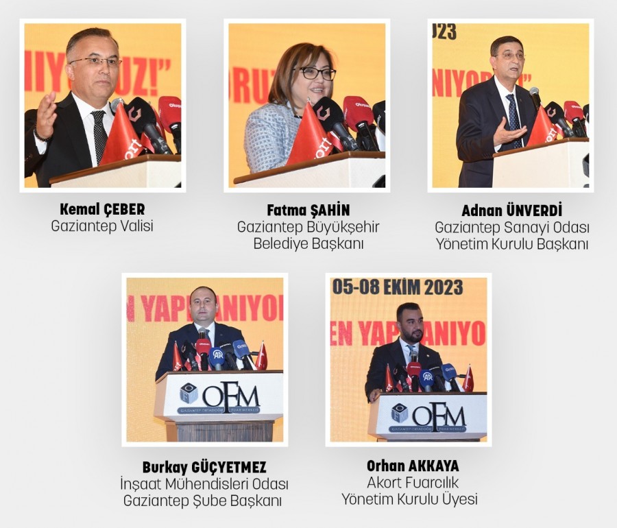 Gaziantep Sanayi Odası (GSO), TMMOB İnşaat Mühendisleri Odası Gaziantep Şubesi ve AKORT Fuarcılık iş birliği ile Ortadoğu Fuar Merkezi’nde düzenlenen fuarın açılış törenine, Gaziantep Valisi Kemal Çeber, CHP Gaziantep Milletvekili Melih Meriç, Gaziantep Büyükşehir Belediye Başkanı Fatma Şahin, Oğuzeli Belediye Başkanı Mehmet Sait Kılıç, Dışişleri Bakanlığı Gaziantep Temsilcisi, Büyükelçi Çağrı Sakar, GSO Onursal Başkanı Abdulkadir Konukoğlu, GSO Yönetim Kurulu Başkanı Adnan Ünverdi, TMMOB İnşaat Mühendisleri Odası Gaziantep Şube Başkanı Burkay Güçyetmez, Gaziantep Genç İş İnsanları Derneği (GAGİAD) Yönetim Kurulu Başkanı Cihan Koçer, Akort Fuarcılık Yönetim Kurulu Başkanı Hülya Akkaya, Yönetim Kurulu Üyesi Orhan Akkaya, GSO Yönetim Kurulu Üyeleri ile sanayiciler, iş insanları ve davetliler katıldı.