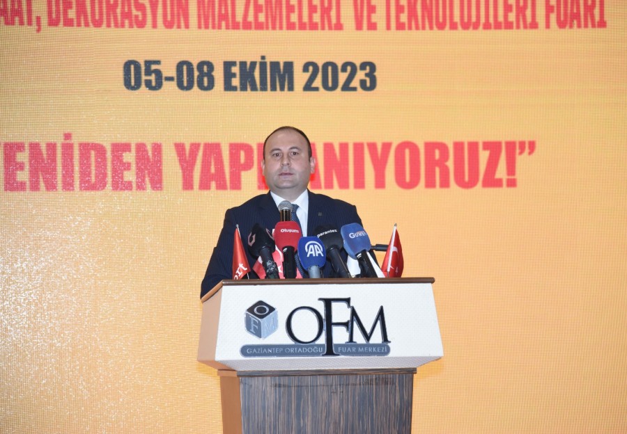 Açılış konuşmasına 6 Şubat depremlerinde hayatını kaybeden vatandaşlarımızı anarak başlayan GSO Yönetim Kurulu Başkanı Adnan Ünverdi de, “11 ilimizde 13,5 milyon insanımızı etkileyen bu büyük afetin ardından yaralarımızı sarmak ve hasarımızı onarmak için elimizden gelen çabayı gösteriyoruz. Bugün depremi yaşamış bir kent olarak şehrimizde inşaat fuarı düzenleyebilmek de bölgemiz açısından kritik öneme sahip olup, çok değerlidir. Keşke yaşanmasaydı; ama inşaat sektörünün önemi bu depremle birlikte bir kez daha görülmüştür. Bugün en başta güvenli yapılar inşa etmek ve yaşadığımız bu acıdan ders çıkarmak zorundayız. Bölgemizde binlerce insanımızın evi yıkıldı veya ağır hasar aldığı için oturulamaz hale geldi. Sadece evlerimiz değil fabrikalarımız yıkıldı” dedi.
