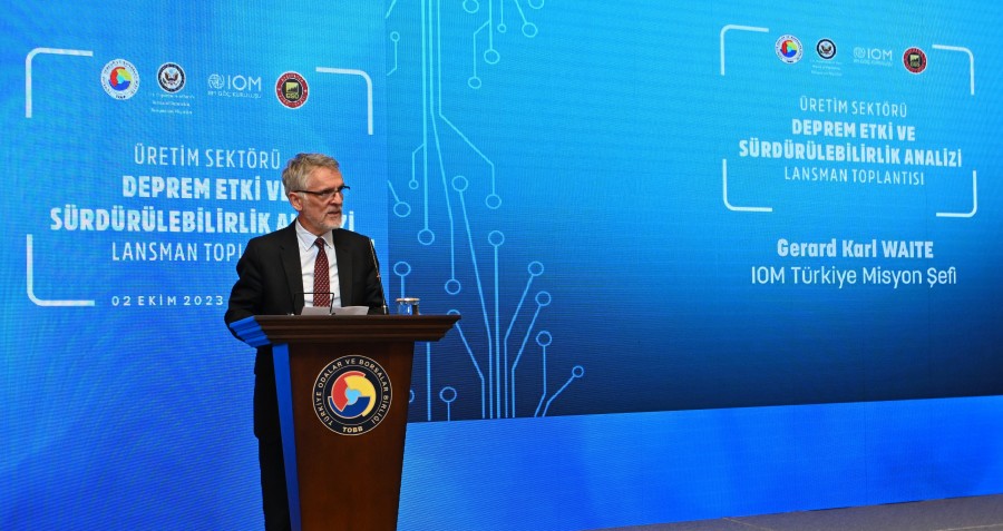 IOM Türkiye Misyon Şefi Gerard Karl Waite ise, bölgeyi sarsan yıkıcı depremlerin üzerinden sekiz ayın geçtiğini ifade ederek bu depremlerin geniş ekonomi üzerinde derinlemesine bir etki yarattığını, üretimle yakından ilgili birçok işletmeyi etkilediğini söyledi.