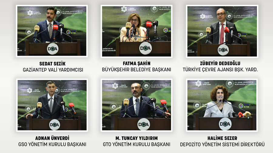 Gaziantep Büyükşehir Belediye Başkanı Fatma Şahin, yaptığı konuşmada çevreyle dost bir şehir vizyonuna vurgu yaparak, “Depozito Yönetim Sistemini sadece bir çevre uygulaması olarak değil, aynı zamanda ekonomik döngüye katkı sağlayacak bir model olarak görüyoruz. Bu sistemle hem doğamızı koruyacak hem de geri dönüşüm ekonomisini güçlendireceğiz. Ayrıca Gaziantep Sanayi Odamızı da tebrik etmek istiyorum. Çalışmaları ve projeleri ile ikiz dönüşümü üçüz dönüşüme çevirdi. Yeşil dönüşüm ve dijital dönüşümden sonra sosyal dönüşümü de kapsayan önemli adımlar attılar. Depozito Yönetim Sistemi projesinin hayata geçirilmesi noktasında Çevre, Şehircilik ve İklim Değişikliği Bakanlığımız ve Türkiye Çevre Ajansı başta olmak üzere emeği geçen tüm kurumlarımıza ve bizi ağırladıkları için Gaziantep Sanayi Odamıza bu büyük vizyonundan dolayı teşekkür ediyor, şehrimiz ve ülkemiz için hayırlı olmasını diliyorum” ifadelerini kullandı.