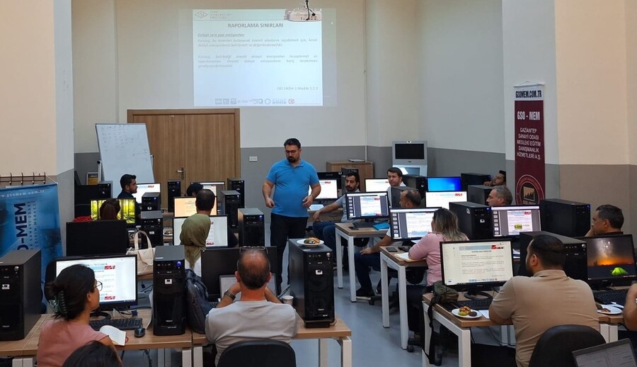 Bu kapsamda; “Gaziantep Yeşil Dönüşüm ve Sürdürülebilir Tekstil Kümesi” üyesi firmalara yönelik verilen “TS EN ISO 14064-1 Sera Gazı Salınımlarının ve Uzaklaştırmalarının Kuruluş Seviyesinde Hesaplanması ve Raporlanması” eğitiminde, ISO 14064 Belgelendirme Süreçleri, sera gazı emisyon sınırlamaları, sera gazı yönetiminde iyileştirmelere gidilmesi için belirlenecek yöntemler, raporlamanın nasıl yapıldığı, bu raporların hangi kriterlere göre düzenlendiği, sera gazı envanterinin doğrulanması ve onaylanması için gereken süreçler vb. konularla ilgili bilgilendirmelerde bulunuldu.