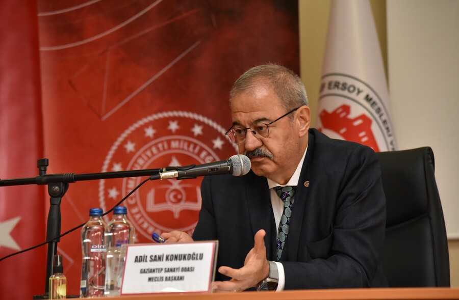 Gaziantep sanayisinin sürdürülebilir büyümesi ve uluslararası rekabet gücünü koruması için meslek liselerinin hayati bir öneme sahip olduğunu ifade eden GSO Meclis Başkanı Adil Sani Konukoğlu, “Gazi şehrimizin üretim gücünün arkasında sadece büyük fabrikalar ya da üretim süreçlerinde kullanılan makineler değil, aynı zamanda nitelikli insan gücü de var. Fakat sahada aktif olarak görev alacak teknik elemanlara, ustalara ve operatörlere her zamankinden daha fazla ihtiyaç duyuyoruz. Hedefimiz sadece iş gücü yetiştirmek değil, aynı zamanda sizleri özgüvenli, donanımlı ve yenilikçi bireyler olarak hayata hazırlamak. Çünkü biz biliyoruz ki, bugün bu sıralarda oturan öğrenciler, yarın bizimle birlikte bu ülkenin üretim gücünü yönetecek. İşte tam bu noktada, meslek liselerinin önemi ön plana çıkıyor. Meslek liselerinde okuyan gençlerimizin doğru yolda olduklarının altını çizmek istiyorum. Bugün burada bir araya geldiğimiz gibi sanayi ile eğitimin el ele vererek oluşturduğu güçlü yapı, hem şehrimiz ekonomisinin gelişimine katkı sağlamayı hem de gençlerimize umut dolu bir gelecek sunmayı hedefliyor. Şunun farkındayız ki, meslek liselerindeki gençlerimizde önemli cevherler var. Geleceğimiz için bunu değerlendirmek zorundayız. Bu açıdan gençlerimizin hepsiyle gurur duyuyorum. Toplantıda ve bu projede emeği olan herkese teşekkür ediyorum. Bu iş birliğini güçlendirmek, geleceğe yapılacak en akılcı ve verimli yatırımlardan birisidir” ifadelerini kullandı.