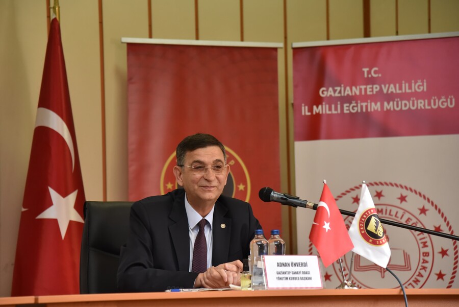 GSO Yönetim Kurulu Başkanı Adnan Ünverdi, sanayi hacmi ve istihdam potansiyeliyle ülkemize örnek olan Gaziantep’te sanayinin nitelikli eleman ihtiyacını karşılamak üzere GSO olarak önemli projeler hayata geçirdiklerini kaydederek, ”2017 yılında GSO Mesleki Eğitim Merkezimizi kurduk ve 10 binin üzerinde kişiye mesleki eğitim verdik. Bugün Milli Eğitim Bakanlığı’nın uygulamış olduğu ikili eğitim modeline GASİMEP Projemiz esin kaynağı oldu. Geçtiğimiz yıl pilot uygulama ile başlayan Meslek Ortaokulları Projesini de bu doğrultuda çok önemli buluyorum. Ayrıca Yükseköğretim Kurulu (YÖK) ile üst kuruluşumuz Türkiye Odalar ve Borsalar Birliği (TOBB) arasında üniversite-özel sektör iş birliğini güçlendirmek ve mesleki eğitimin niteliğini artırmak amacıyla imzalanan ‘Meslek Yüksekokulları Eğitim İşbirliği Protokolü’ de eğitim ve üretim tarafının aynı masada buluşması adına çok yeni bir adım ve son derece kıymetli” diye konuştu.