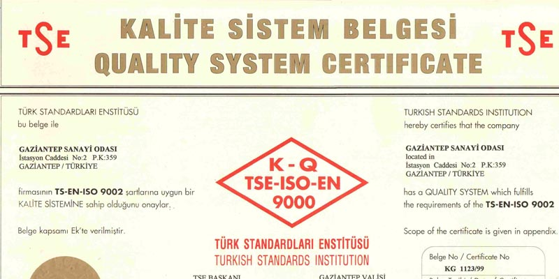 Hizmet kalitesini uluslararası standartlara çıkaran Gaziantep Sanayi Odası ISO-9001 Kalite Belgesi alarak Türkiye’de bu alanda öncü odalar arasına girdi.